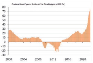 2021 yılında, Hollanda’da satılan konutların ortalama fiyatının 80.000 Euro arttığı görülürken, 2022 yılında konut fiyatlarının %17,30 oranında artacağı ön görülüyor.