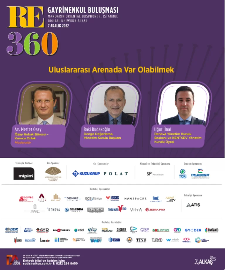 Denge Değerleme’nin de oturum sponsorları arasında yer aldığı RE360’ta, Yönetim Kurulu Başkanımız Baki Budakoğlu, “Uluslararası Arenada Var Olabilmek” temalı oturumda konuşmacı olarak yer alacak.
